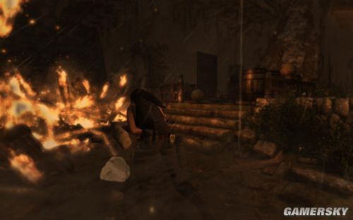 敌人都解决掉以后可以在营火处歇息,之后爬上岩壁通过火场后用榴弹再次炸开铁障碍物。之后出来看到珊曼莎被围,