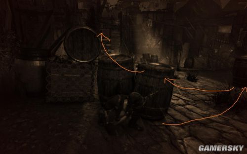 刚开始敌人会从中间来。这里最好把油桶先留着,因为一会儿会有盾牌兵从那通过,