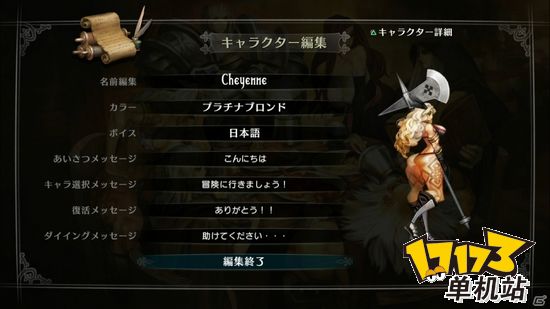 各种选项都有自己的特性,请选择适合自己游戏风格的角色。除了能力方面的考虑以外,也提供了角色多种颜色的选择。颜色的不同,角色的外观就会有变化,请选择喜欢的颜色。除了颜色外,还提供了在线游戏时与其他玩家匹配时的打招呼用语。