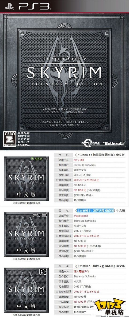 **S3/X360《上古卷轴5 天际 传奇版》亚洲中文版**预售开始,预定7月发售!