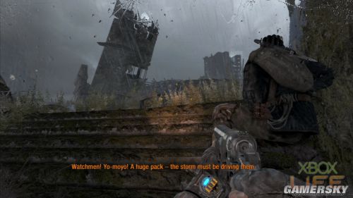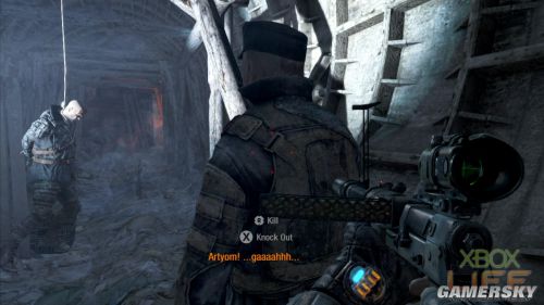 以游戏画面而言,《地铁:最后的曙光》在Xbox 360 上的表现虽然不及PC 版本那样的细腻,但也已经相当不俗了,无论在各种物件的贴图材质(角色的皮肤、地表的岩石与枪枝的金属质感等等。)、物理效果(烟雾、爆炸和大雨弥漫等等。)或是物体建模方面,都能够确实地表现出该有的细节,也不太常见到破图的情形,看得出制作团队的用心。而在音乐与音效方面更是搭配得相当到位,例如在潜行中被敌人发现的话,背景音乐就会突然从缓慢压抑的节奏转变成充满紧张感的快节奏,此外如主角的呼吸声、脚步声、敌人的交谈以及枪枝的各种音效也都能让人清楚地辨识,可说是临场感十足。