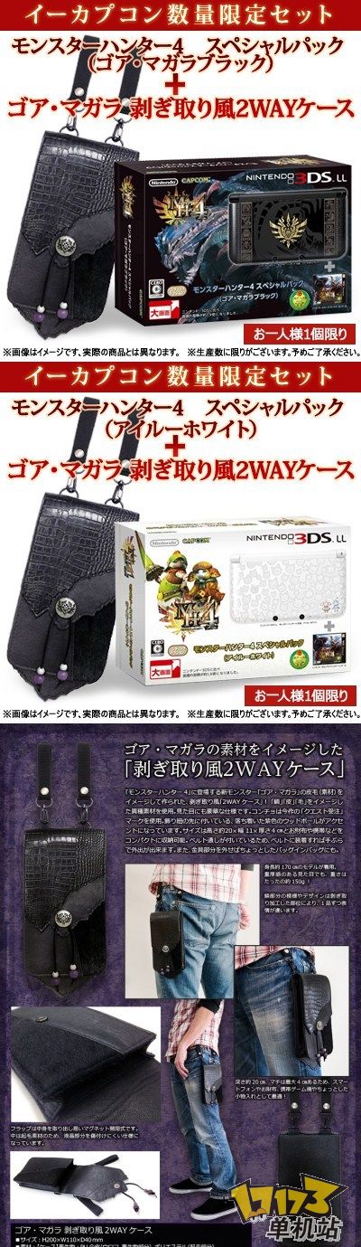 《怪物猎人4》主机同捆限量版昨天预约解禁后,各受理网站也是异常火爆,官方网店设置了每小时访问限制,一整天连接都很困难,因此访问都集中涌向一直很平稳的乐天,到深夜才有所缓和。令人意外的是人气最高的不是单体版,而是带收纳包的版本,这次的收纳包设计较为出色,售价为2000日元。