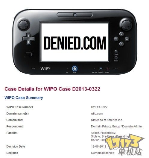 WiiU.com域名之争任天堂败诉,美国任天堂于今年2月向世界知识产权组织提交抢注域名WiiU.com的投诉申请,今日惨遭败诉。由于域名注册于2004年1月13日——甚至早于Wii,世界知识产权组织官网(WIPO)在6月19日贴出的公告判定任天堂上诉失败,这也就意味着如果任天堂想