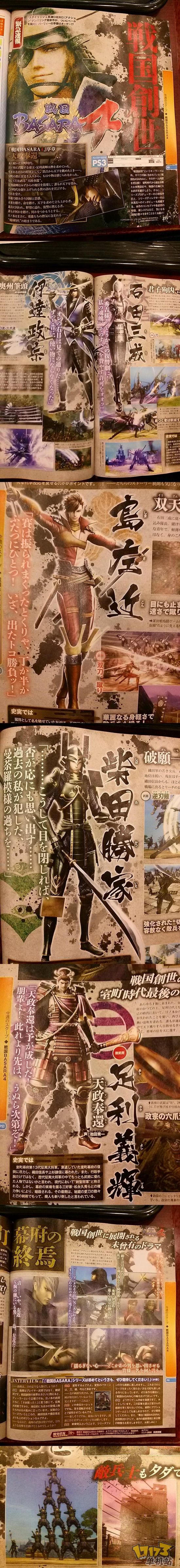 PS3《战国BASARA4》本周杂志图公开,游戏以“战国创世”和“天政奉还”为主题的,故事背景为室町时代。确认登场的角色有伊达政宗、石田三成、足利义辉(CV:池田秀一)、岛左近(CV:中村悠一)、柴田胜家(CV:冈本信彦)。游戏新要素包括两位武将共斗而非单纯的合体技,新作主打如水