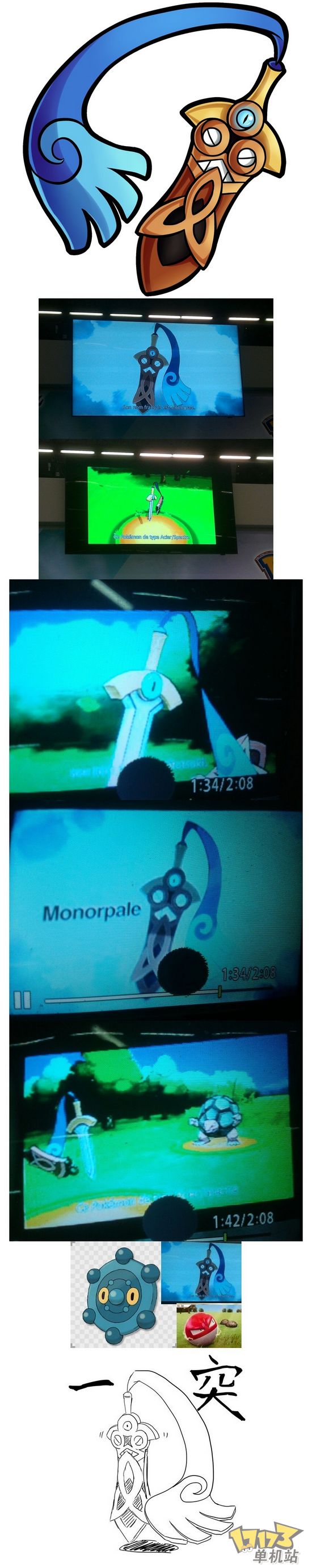 在法国巴黎今天召开的第14届“JAPAN EXPO”活动上,制作人增田顺一播放了一段视频,其中公布这只有点像剑形状的新口袋妖怪,日文名叫“一突(ヒトツキ)”,属性是钢和鬼。
