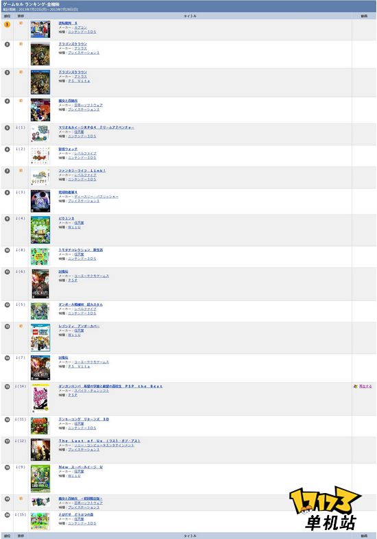 TSUTAYA店铺上周排行:新作3DS《逆转裁判5》首位,目测在13万左右,虽不及4,不过在系列里也算是高位了PS3/PSV《龙之皇冠》分居第2和第3位PS3《魔女与百骑兵》第4位,限定版19位3DS《幻想生活 LINK》第7位而WiiU大作《乐高都市 卧底风云》未入前十,排名第