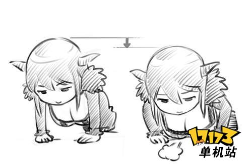 ▼做伏地挺身的时候还没下去多少,胸部就先贴到地板了(这是好处吧XDD)