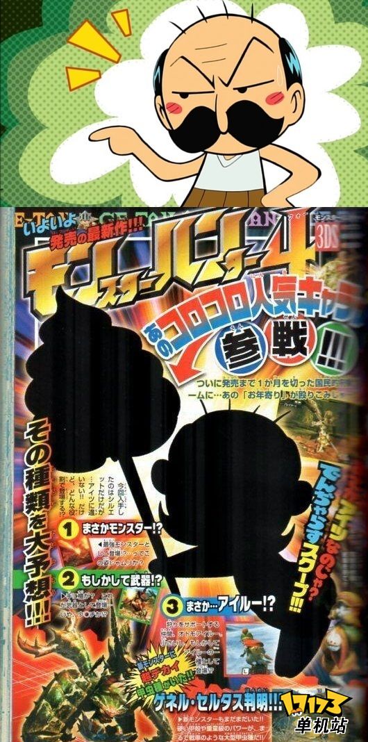 3DS平台游戏《怪物猎人4》本周新情报——危险爷爷宣布参战!不过目前还不明确是以怪物,武器还是随从猫的形式出现,但后者的可能性较大。《危险爷爷》乃曾山一寿老师的爆笑作品,风靡日本,销量一度突破200万册。《危险爷爷》主要讲述爷爷与孙子之间的故事,和与自认为是世界上最伟大的人——校