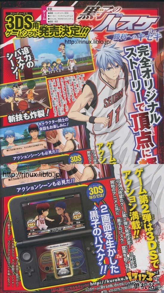 3DS平台游戏《黑子的篮球 通往胜利的轨迹》本周VJ杂志图,游戏画面首度公开。游戏为《黑子篮球》游戏化第二弹。发售日未定。