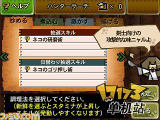 即使是同样的食材,调理方法不同,食补技能也会变化。技能虽然不同,但是可以告诉料理长你所倾向于什么,给他参考。