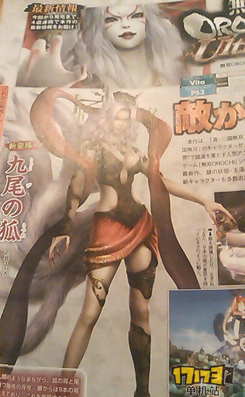 PS3/PSV平台游戏《无双大蛇2 究极版》新角色——九尾之狐“妖狐”参战决定,武器:尾巴。此外判明的情报还有:游戏新增“究极模式”,五人小队以脱离迷宫为目进行探索,以及新作支持可一键切换角色。