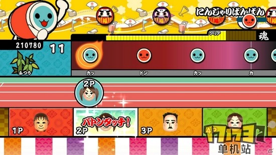 “接力触摸演奏”模式是一个全体玩家演奏同一首曲目,按照顺序演奏属于自己的部分,支持2人(最对4人)同时游戏。曲目难易度全体一直,不管是老手还是菜鸟都要一起努力攻略目标!