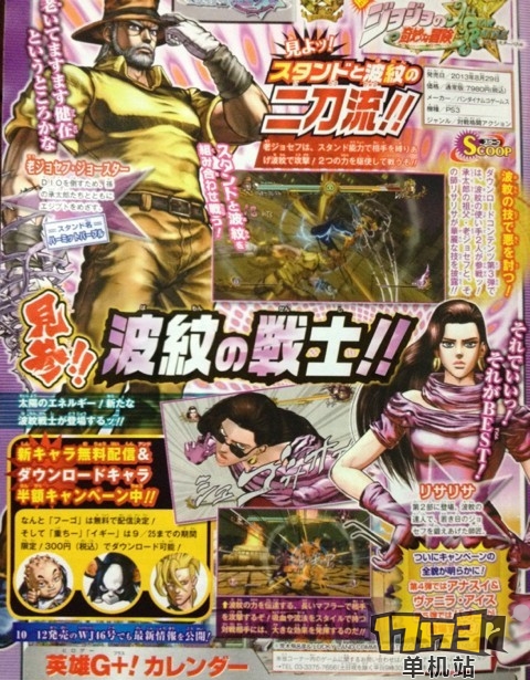 杂志速报:PS3平台游戏《JOJO奇妙冒险全明星战斗》第四弹DLC:丽萨丽萨(第二部 CV:**敦子)和老乔瑟夫(第三部 CV:杉田智和)参战决定!!