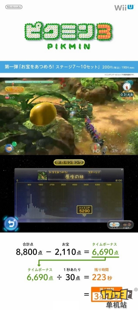 WiiU《皮克敏3》付费DLC第一弹,200日元,免费更新将增加世界纪录显示功能。