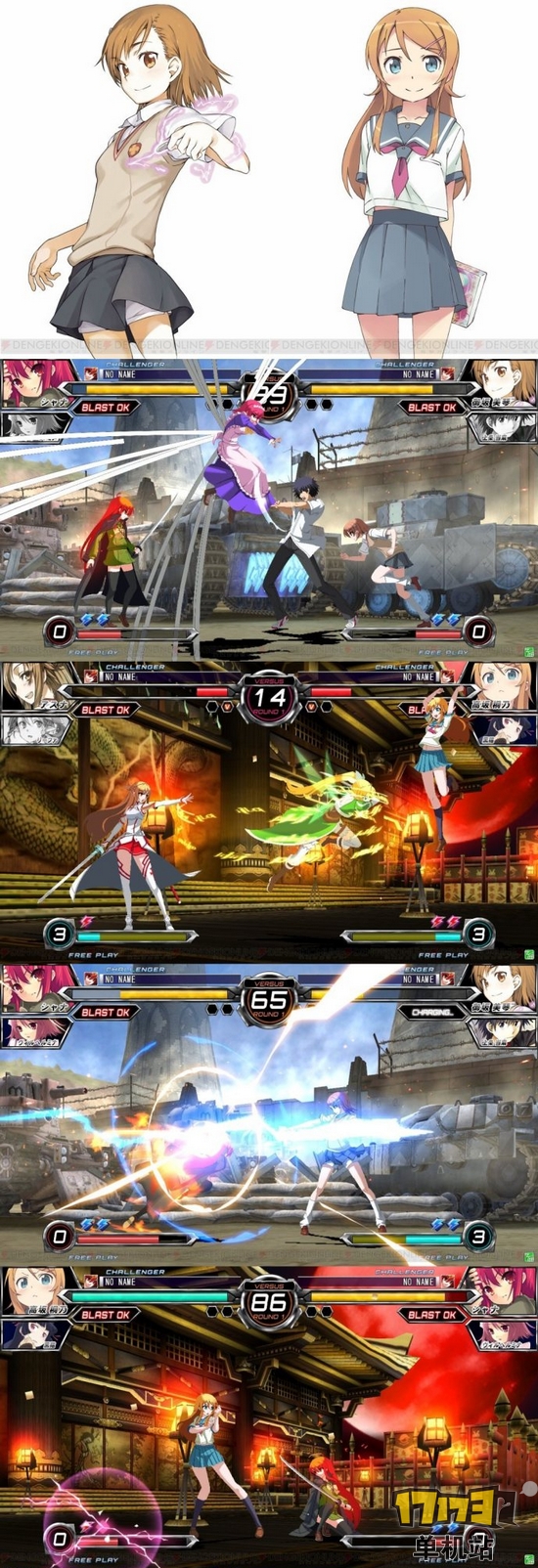世嘉 X 电击文库格斗游戏新作《战斗高潮》确定平台为街机,除了已公布的《刀剑神域》亚丝娜和《灼眼的夏娜》夏娜外,本次公开两名新参战角色:《魔法禁书目录》御坂美琴,支援角色:上条当麻,以及《我的妹妹不可能这么可爱》高坂桐乃,支援角色:黑猫。