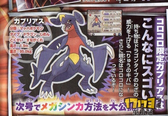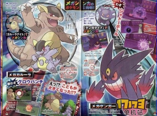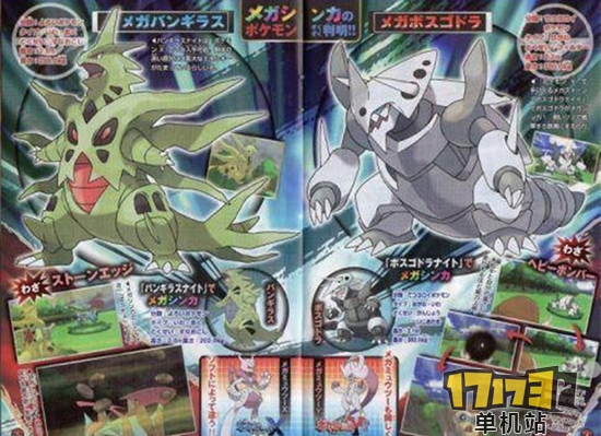 3DS平台游戏《口袋妖怪X/Y》本月杂志图放出:御三家官绘,MEGA袋龙,MEGA耿鬼,MEGA班吉拉(岩/恶,特性:沙暴),MEGA波士可多拉(钢,特性:过滤),另外班吉拉为Y版精灵,但班吉拉用的MEGA进化石却是X版限定,而波士可多拉则正好相反。