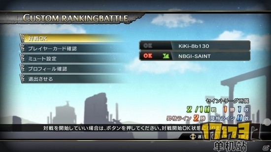 本作中的在线对战主要分为玩家竞赛(Player Match)和排行竞赛(Ranking Match)两种,而玩家竞赛又分为玩家对战和自定义对战,而排行竞赛也分为两种,分别是玩家排行对战和自定义排行对战。