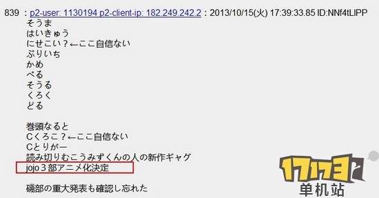 今日,2CH上JUMP偷跑情报称:《JOJO的奇妙冒险》第三部动画化决定!具体播放时间暂不明。