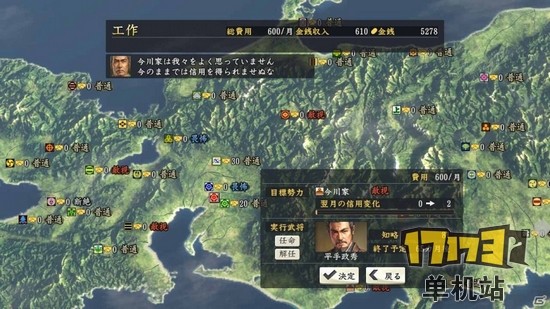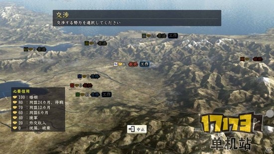在本作品中各方势力可以积累的“信用”,同盟和援军等进行的交涉。而“信用”是通过“工作”的指令积攒的。