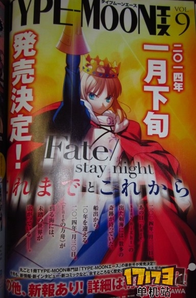 杂志《Comptiq》12月号预告《Fate stay night》新动画情报将在2014年1月下旬发表在《型月ACE》上。同时,杂志还公开樱Saber的真名是冲田总司,并宣布樱Saber将手办化。