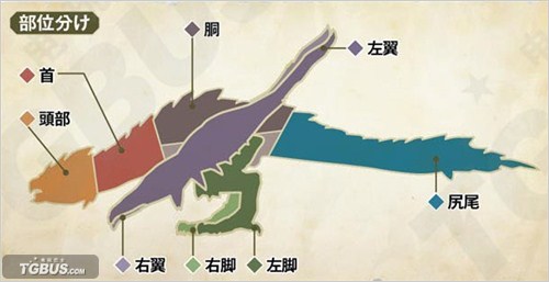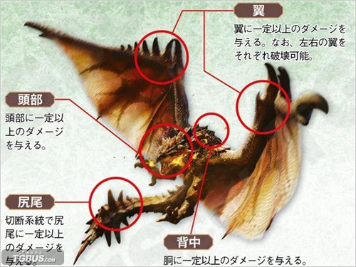 | 可破坏部位 | 头 | 破坏报酬 | 火竜の鱗、火竜の甲殻(下位)、火竜の上鱗、火竜の甲殻、火竜の紅玉(上位) |