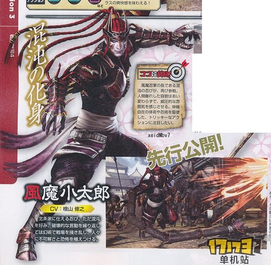 新一期电击杂志公开PS3/PSV平台游戏《战国无双4》人气忍者角色风魔小太郎新造型。