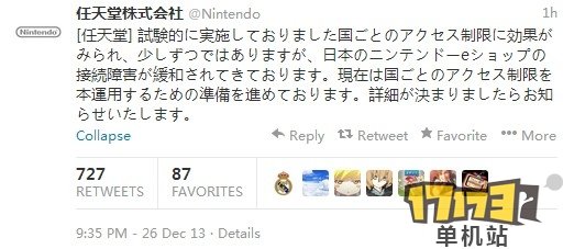 此外,任天堂官方twitter发布新消息:为解决E-SHOP访问难问题,决定陆续对各国实施访问限制。今后将通过twitter向玩家报告问题的解决情况。