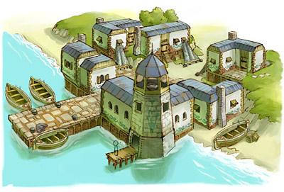渔村那鲁斯:曾经由于商品交易而繁荣的渔村。原先作为海路据点而起到重要的作用,但随着据点迁移至其他城市,现在的那鲁斯只是作为偶尔向莱达城运送货物而使用。