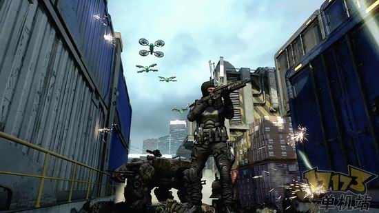 22.游戏中的无人机,无人部队都可以控制,并且占据了不少的戏份,玩家可以在游戏中通过手腕的控制器来操控这些玩意,帮助自己摧毁目标和指明道路。