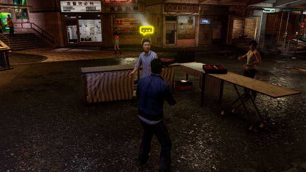 跑到每一个黄色对话框的小贩面前勒索保护费。顺带一提,白色的是用来增加主人公某一方面的能力的,如果对接下去的群殴没有自信的同学可以尝试花点钱买点吃的喝的赚取自己的攻击加强啊,防御加强啊什么的。