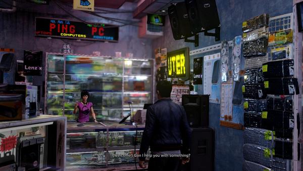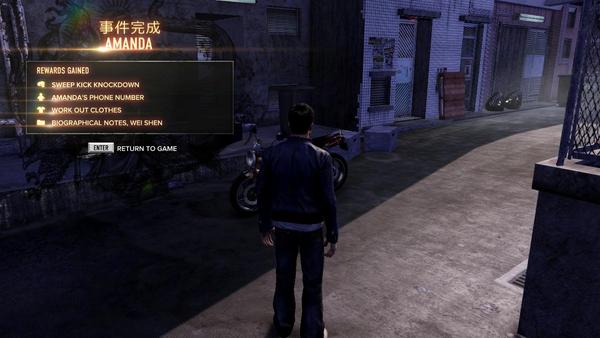 跑到这家店里面,和美女小姐聊天(上帝!怎么游戏里面的中国女孩都那么好看!现实多么残酷!被女生暴打中......)然后得到包裹。可惜主人公就是被抢的命,出门就被抢走了包裹。不必慌张,劫匪会傻乎乎的跑到一个死胡同,所以就拳打脚踢的虐死就完事ok。