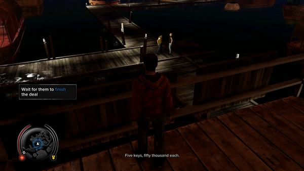 包裹里面是窃听器,任务是在我们Winston老大的餐厅放置一个,非常简单。到施工现场向上爬后,跟着绿色的东西向前走,(包括绿色的布)到餐厅上方。