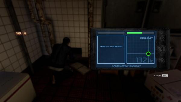这个时候按右方向键卸下螺丝,放置感应器,鼠标左右移动到绿色标题区域,等待上面的绿糙全满。完毕后左方向键拧螺丝。