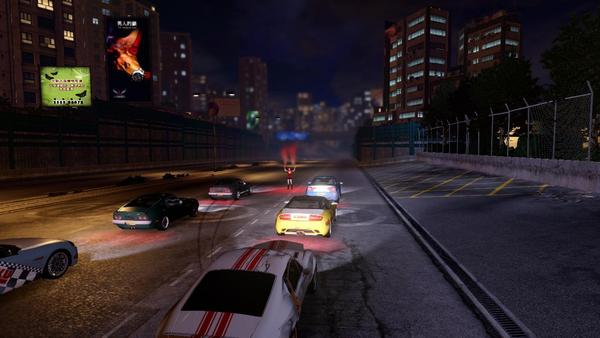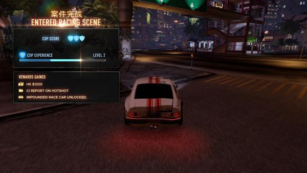到达比赛地点,在此没有专门去赚钱买车的同学们,请注意,从警察小姐所在地出门后左下角有一两白色的红条车,那个可以当作赛车来开。(比赛完后也会变成你自己的车~)