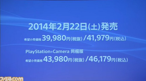 PS4日本地区发售日正式决定!2014年2月22日,39980日元(不含税),41979日元(含税)。